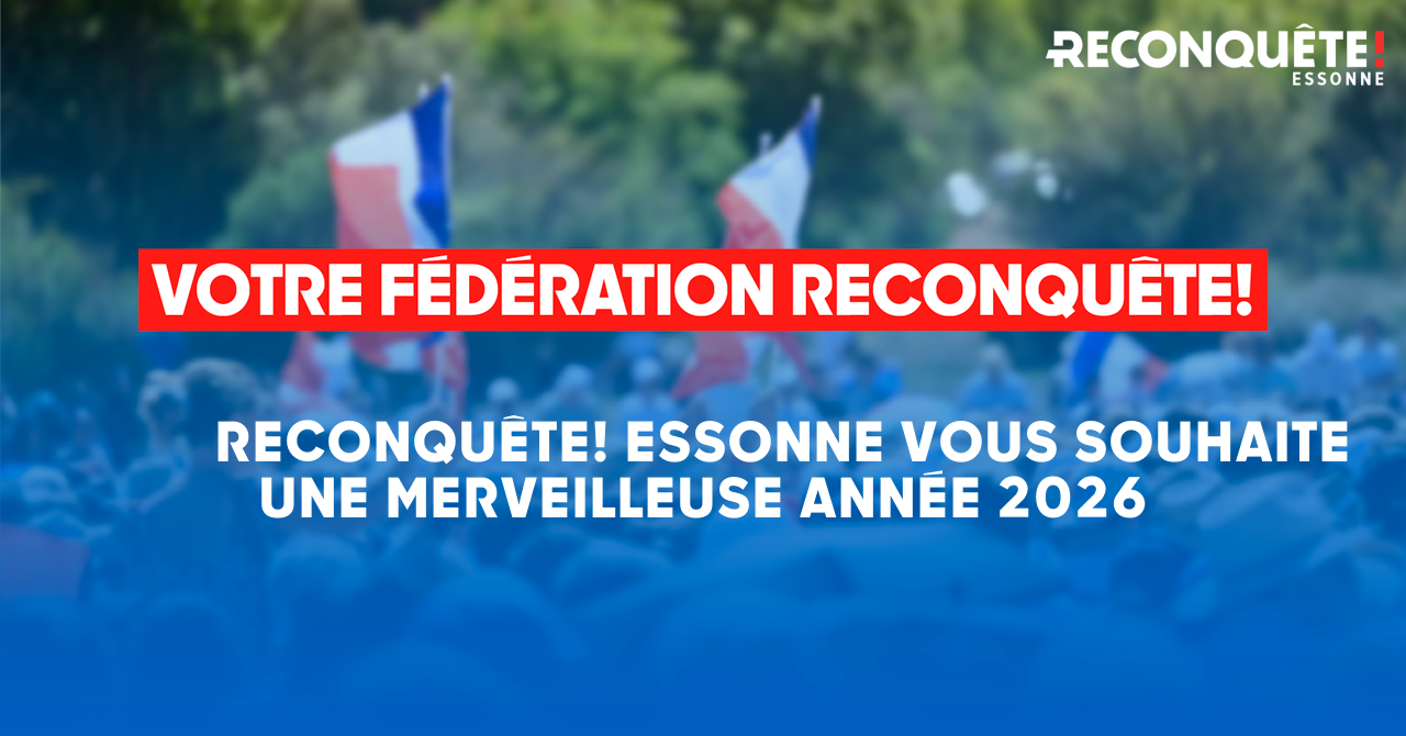 Les équipes de votre fédération Reconquête! Essonne vous souhaitent une merveilleuse Année 2026 à vous et vos proches. Que celle-ci vous emplisse de bonne Santé, de Joie, de Tranquillité, de Réussite, d'Épanouissement et d'Amour.